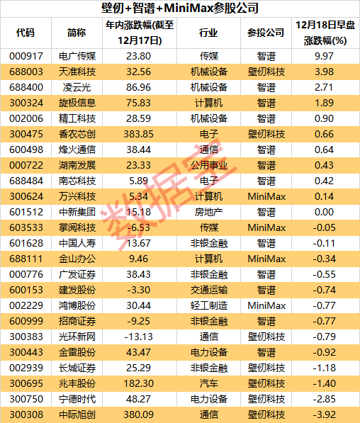 人民财讯12月18日电,近日,“大模型六小龙”(智谱华章、MiniMax、月之暗面、阶跃星辰、百川智能、零一万物)中多家公司的IPO更新进度条。香港联交所披露的资料显示,壁仞科技已正式通过港交所聆讯。据腾讯新闻《一线》从不同信源处获悉,MiniMax和智谱华章本周初均完成证监会备案并通过港交所聆讯,东南亚 攻略标志着国产大模型迈入资本化关键阶段。从参股公司的市场表现来看,截至12月17日,壁仞科技参股方香农芯创、中际旭创、兆丰股份年内涨幅均超过180%。12月18日早盘,智谱华章参股公司电广传媒封住涨停板,壁仞科技参股公司天准科技涨幅接近4%。
