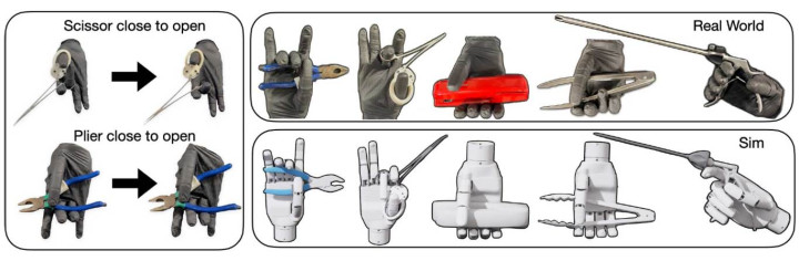 在这项研究中,MANUS Metagloves Pro在机器人努力建立自主抓握时,通过提供可靠的、人类演示的初始抓握姿态来支持训练过程。这种工作流程得益于Manus高精度的手部姿态捕捉方案,Manus可以再现自然的人手动作,并捕捉铰接工具所需的细微抓握变化。通过使用平稳集成到机器人管道中的远程操作演示系统,研究人员能够确保每次试验的稳定开始状态,这实现了有效的机械学习和虚拟模拟到现实应用的转移。