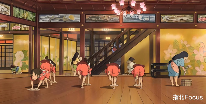 在电影《千与千寻》里面,“小千”在汤屋从事澡堂杂役的工作,每天跪在地板上用一条抹布用力擦拭地面。这种日式擦地法,在其他日本影视里也经常看到。