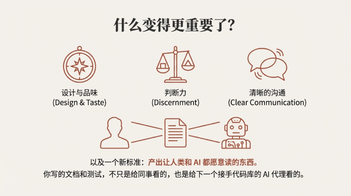 他们在推动工程师多写文档、多写测试的理由也是这个:这些东西,不只是给人看的,也是给下一个接手这个代码库的AI代理看的