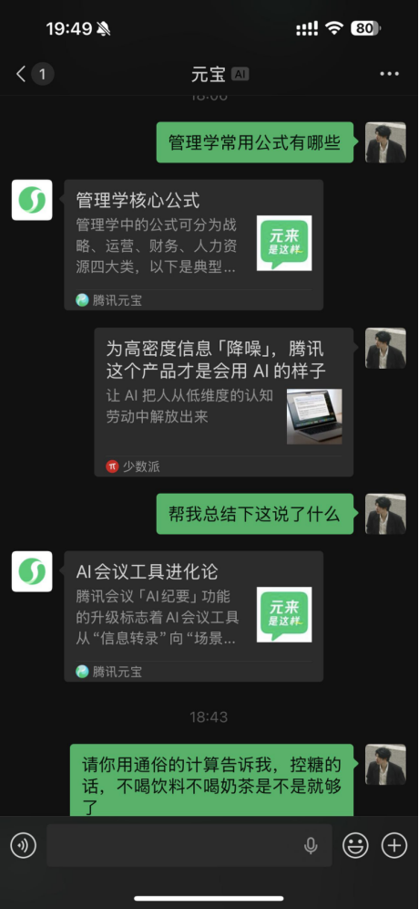 而现在通过微信元宝,只需两步:加好友–发送文档+一句“帮我解析核心内容”,10秒内就能拿到结果。用户操作成本降低90%以上,这就是场景化入口的魅力。