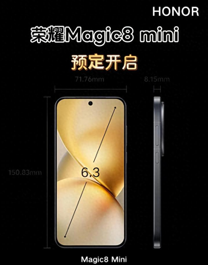 小屏机市场终于有新选择了!此前iPhone SE系列配置拉胯,安卓阵营多是中端芯凑数,荣耀这次直接上旗舰配置,难怪预定消息一出,线下门店就排起长队。从曝光信息看,Magic8 mini精准戳中手小用户痛点:6.3英寸黄金尺寸,单手握持无压力,厚度仅8mm左右,比iPhone 17还轻薄。