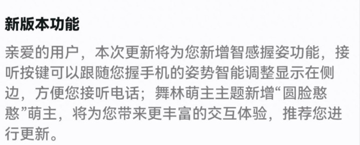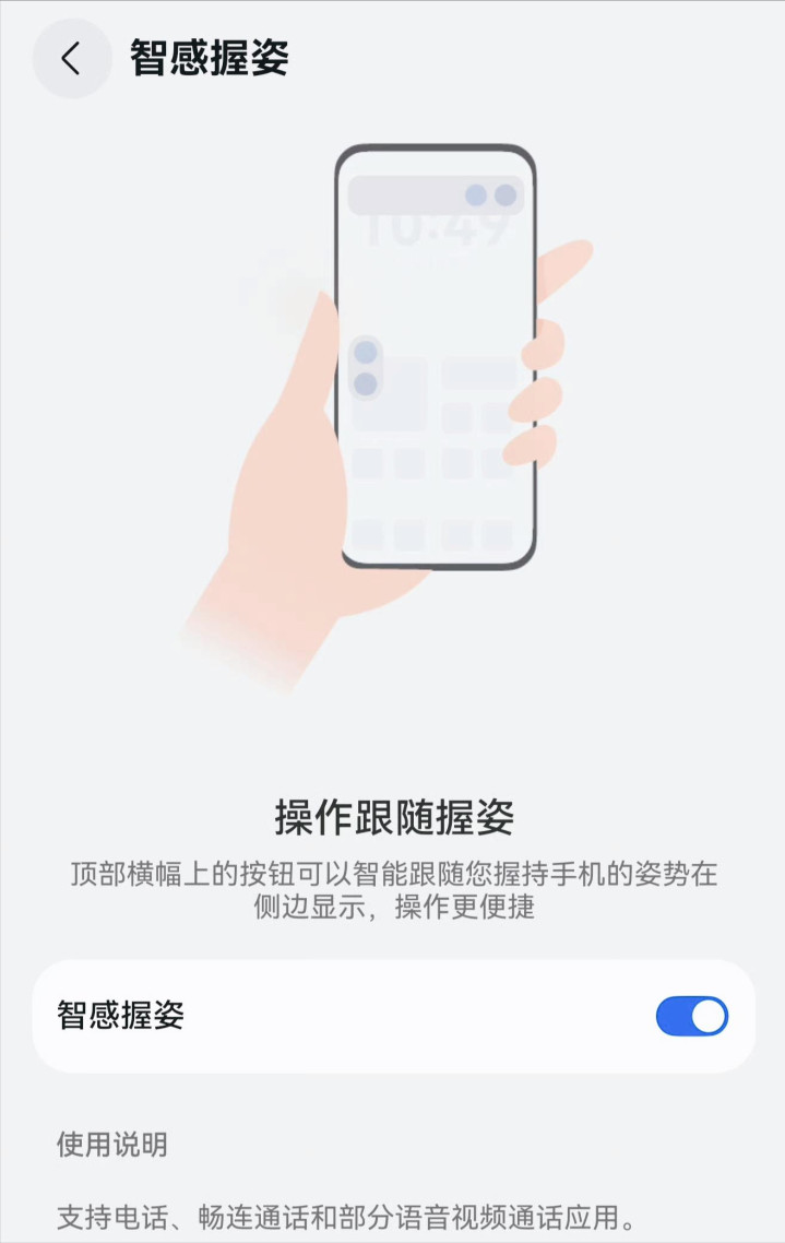 新版本新增了“智感握姿”功能,它能利用传感器识别你当前的单手握持状态。