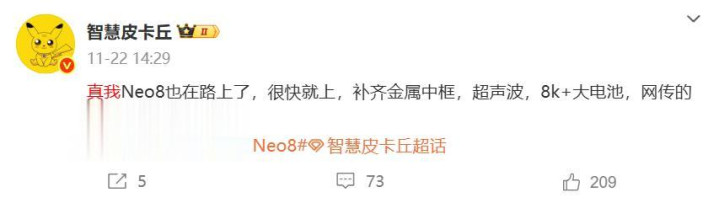 自从一加带来了165Hz高刷后,各家似乎都准备跟进,真我即将要发布一款165Hz高刷的手机,近期得到了多次爆料,真我neo 8还会有骁龙8Gen 5旗舰处理器,并补齐3D超声波指纹、金属中框等,可以期待一波徐起广场,定价依然会高人一等。