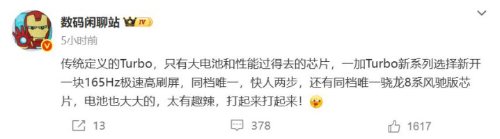 接下来一加还会带来多款165Hz高刷手机,着重提升电竞体验,近期官方称会有Turbo系列产品,预计在春节前能够上市,定价瞄准千元档位,主要对标红米Turbo系列、iqoo z系列,采用骁龙8系高性能芯片,加持风驰游戏内核,游戏体验大幅提升,本期就盘点这些中端手机,朋友们可以了解下。