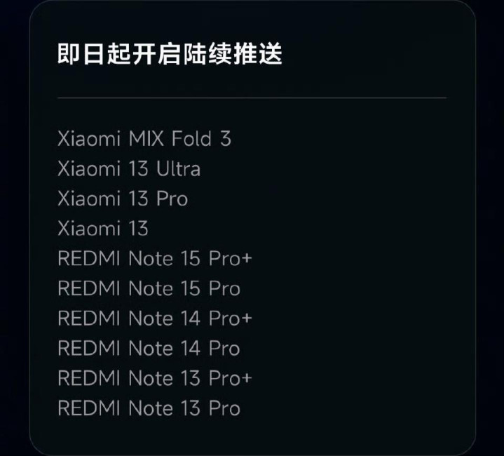 像小米13这种经典钉子户,还有Redmi Note系列的Pro机型,都已经收到了6-7GB的完整包推送。