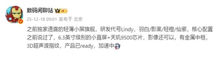 细节配置上,新机诚意满满。金属中框的加入将进一步提升机身质感与坚固性,3D超声波指纹则带来更快捷、安全的解锁体验,配合不俗的影像配置,全方位拉满小屏旗舰的使用体验。