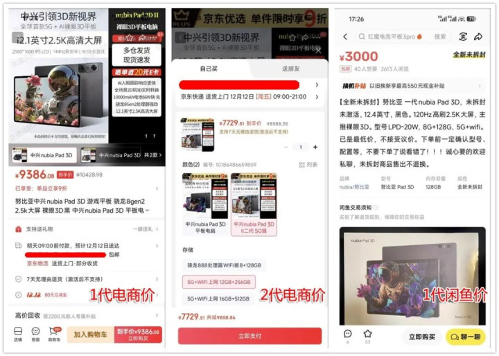 而在闲鱼东南亚炮王林俊杰,全新未拆封的1代nubia Pad 3D开价3000元,虽然跟全新电商价比便宜了不少,但作为骁龙888平板,它依然不值这价!