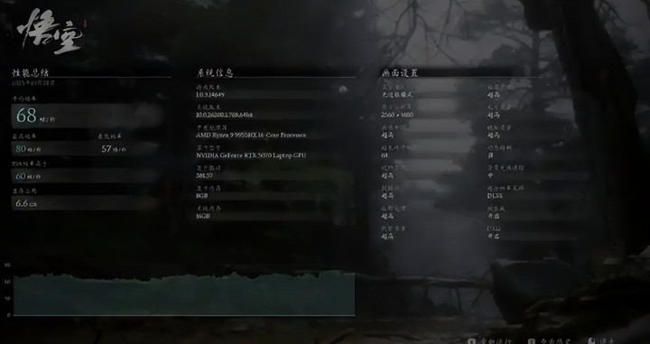 总结下来,在AMD 锐龙 9 9955HX 移动处理器的加持下,天选6 Pro在2.5K分辨率下能通杀主流3A大作,尤其是支持DLSS帧生成的游戏,帧率表现更是惊艳,游戏体验拉满。