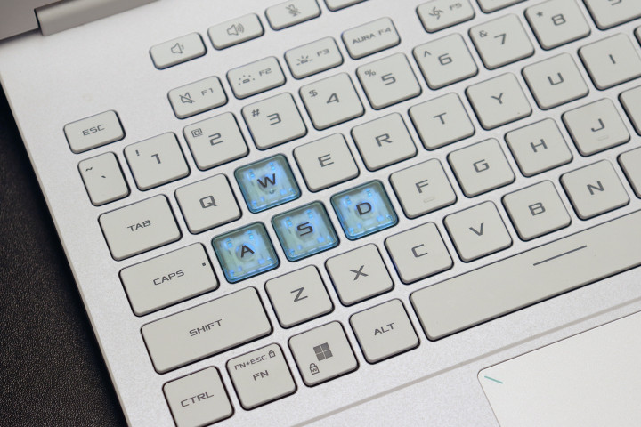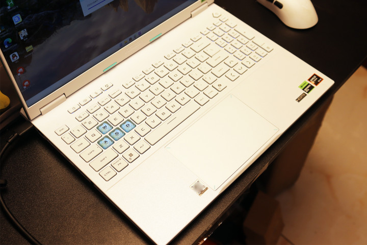 C面键盘是游戏玩家的重点关注区,天选6 Pro做得很到位:左上角单独拎出四颗快捷按键,音量加减、禁用麦克风、奥创智控中心一键直达,操作超顺手。全尺寸键盘带独立小数字键,方向键也是完整尺寸,不会误触;WASD按键用了透明键帽,背光透出来超炫酷,晚上玩游戏氛围感拉满。触控板面积够大,240Hz采样率+玻璃触感,滑动流畅,不用外接鼠标也能轻松操作。