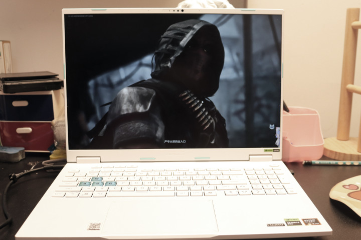 天选系列的外观从来不会让人失望,这次的天选6 Pro锐龙版依旧延续“潮玩新次元”的调性。我手上这台魔幻青配色,直接戳中二次元爱好者的心巴——A面是天选姬专属的青色,摸上去有细腻的金属质感,关键是不粘指纹!日常使用不用频繁擦机身,这点必须给好评。